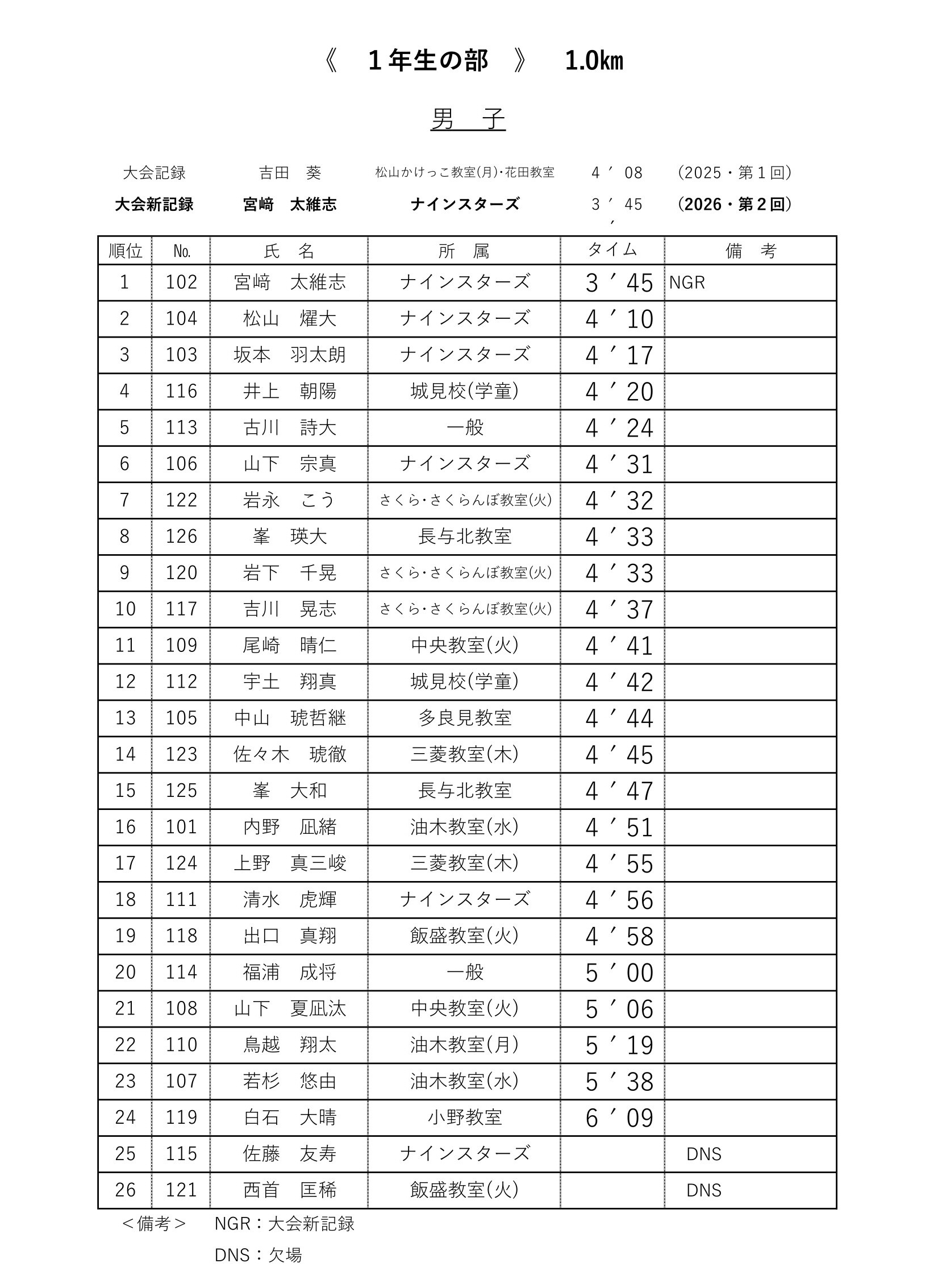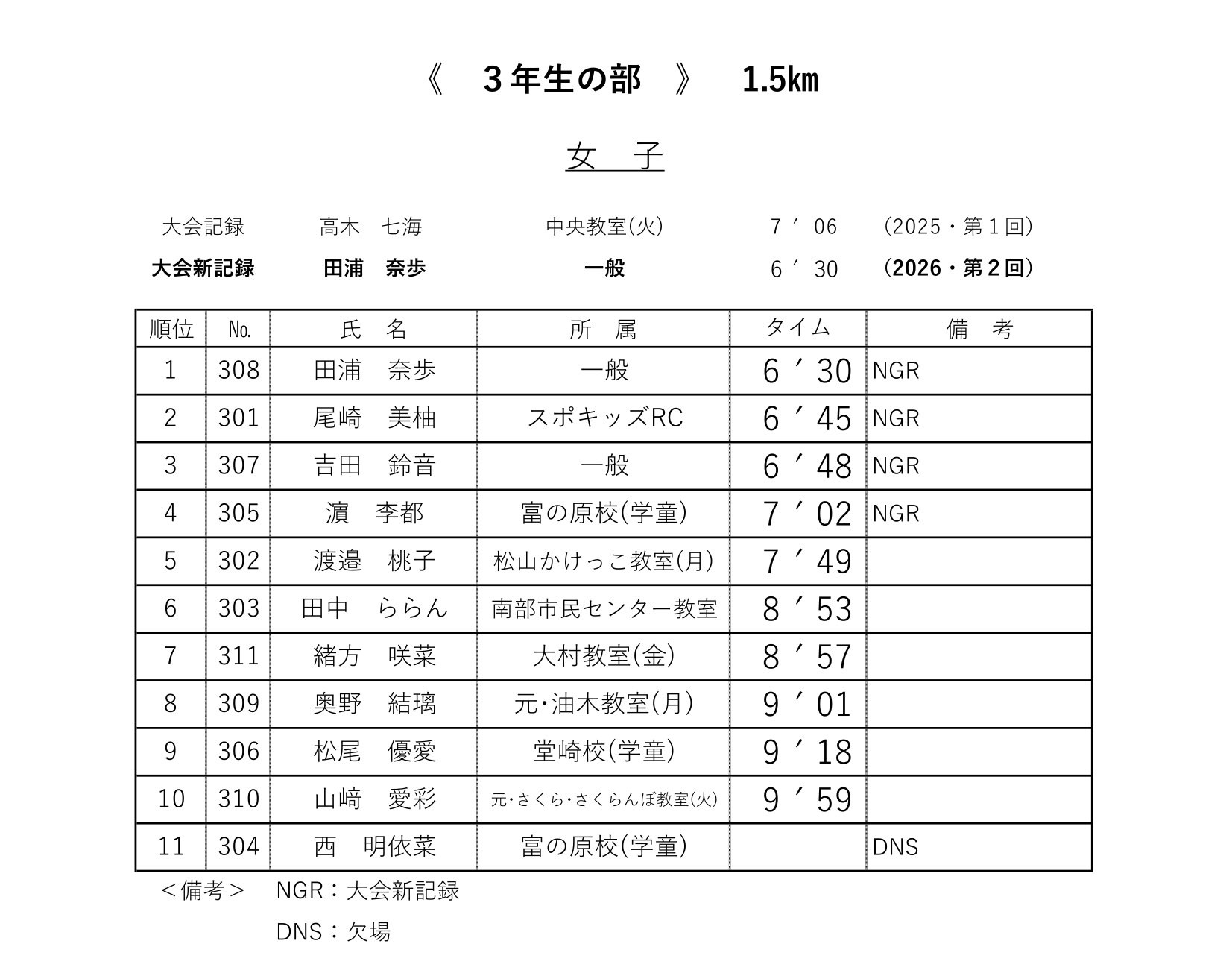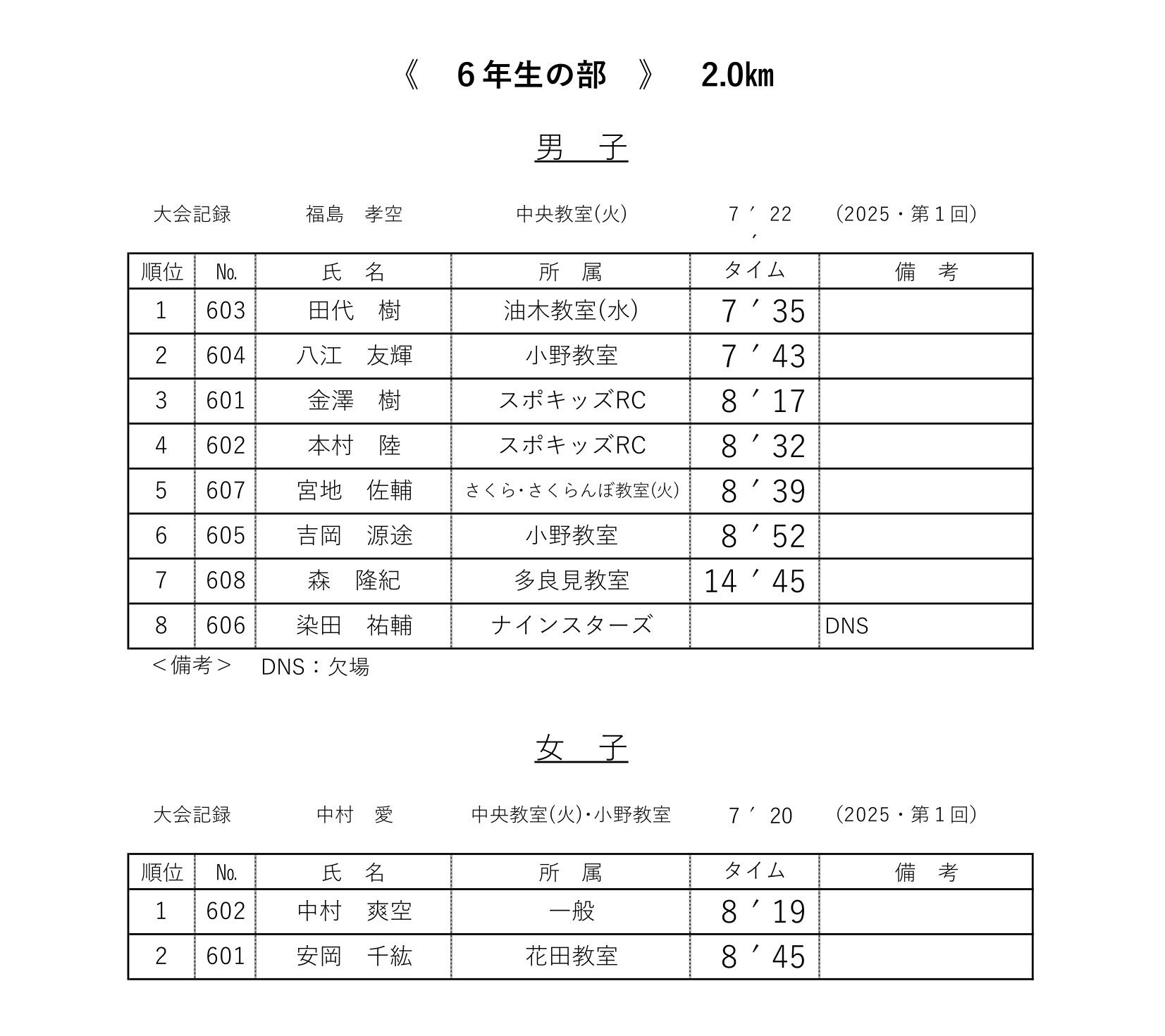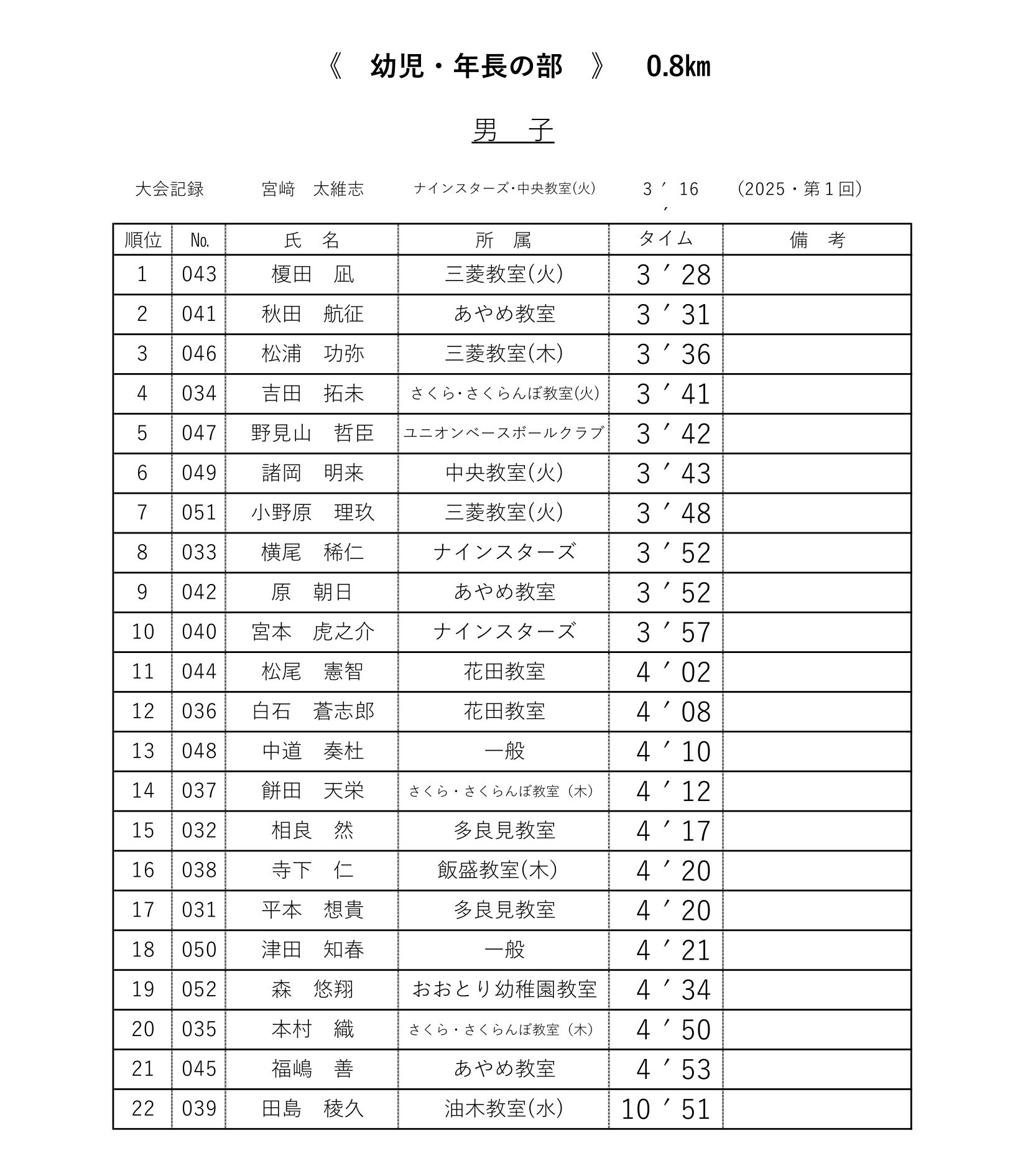 各レースの記録表を掲載いたします