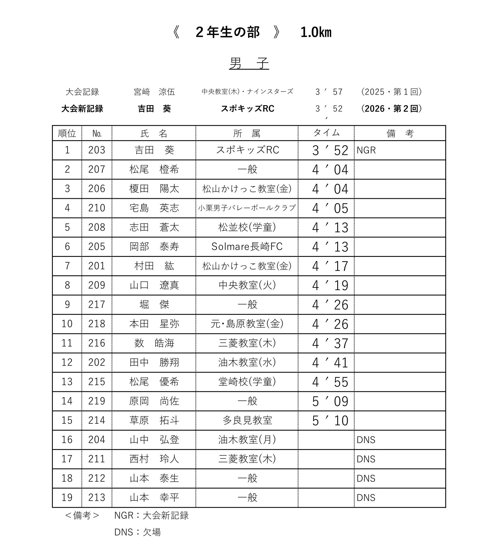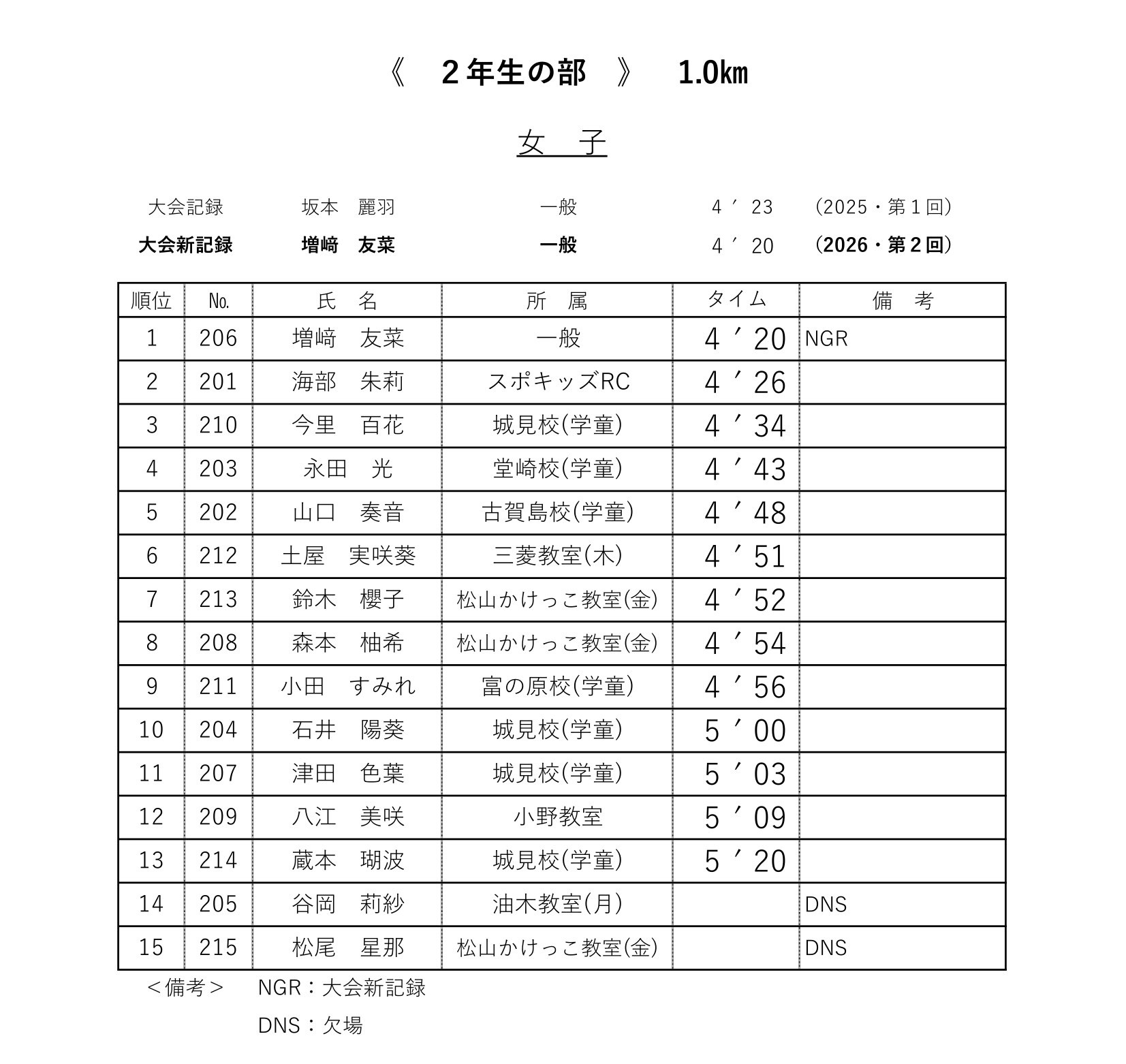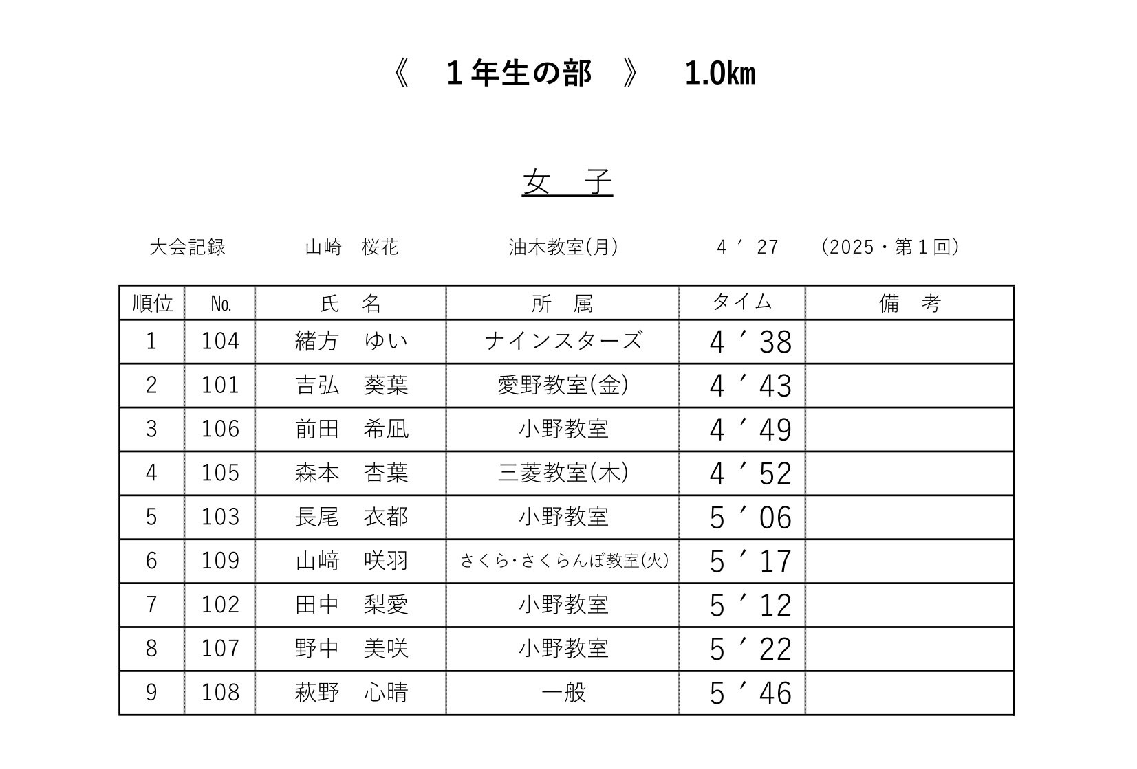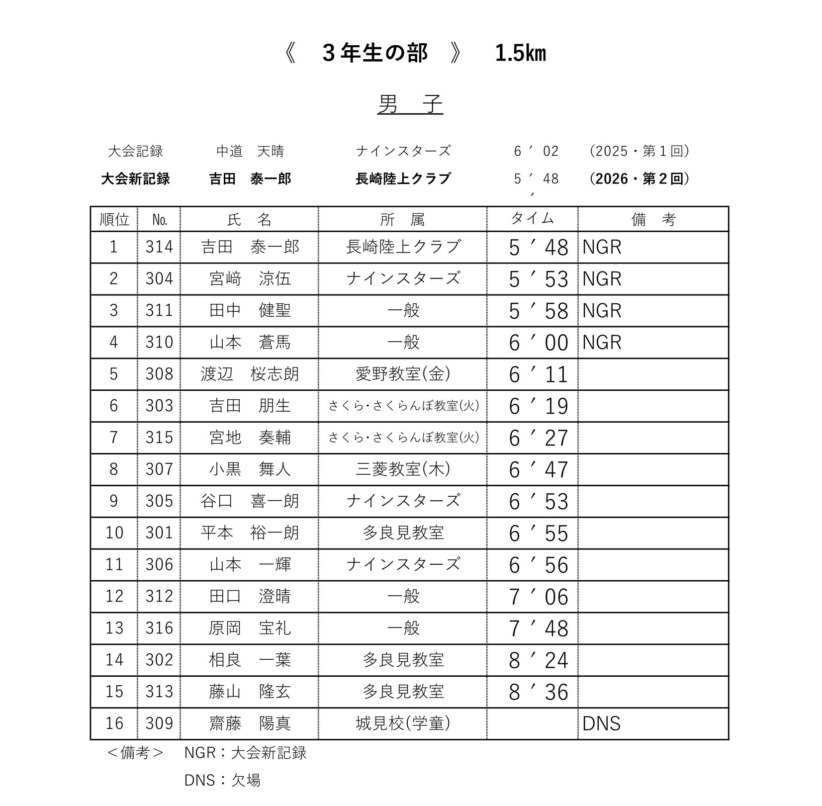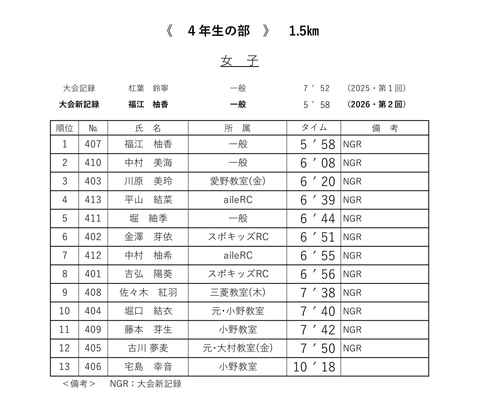 各レースの記録表を掲載いたします
